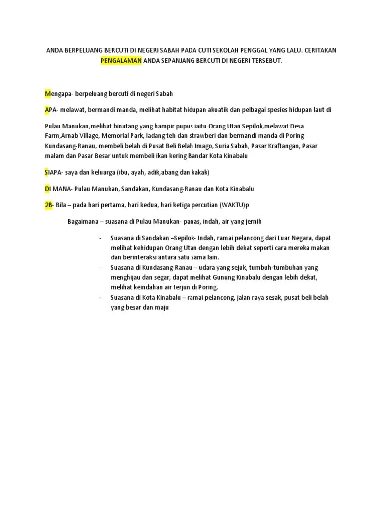 Karangan Cuti Sekolah : Karangan Cuti Sekolah Pdf